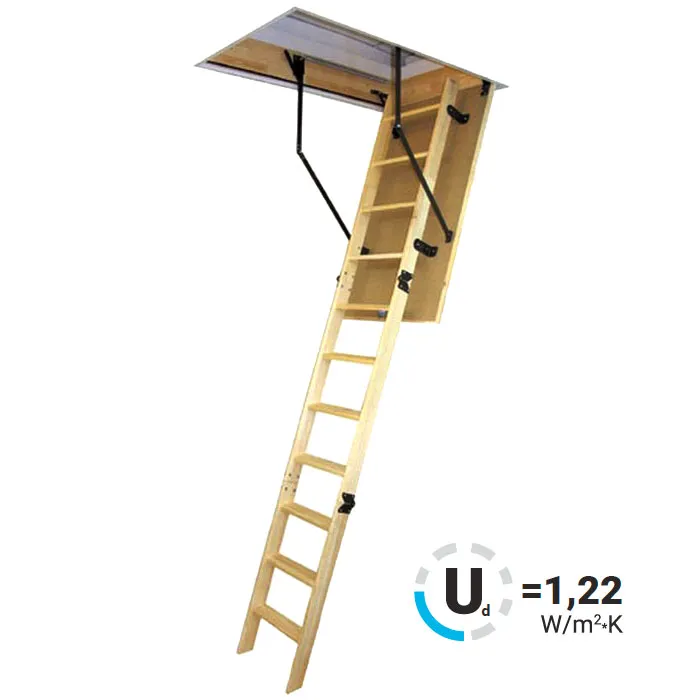 Складная 3-х секционная чердачная лестница из массива сосны.