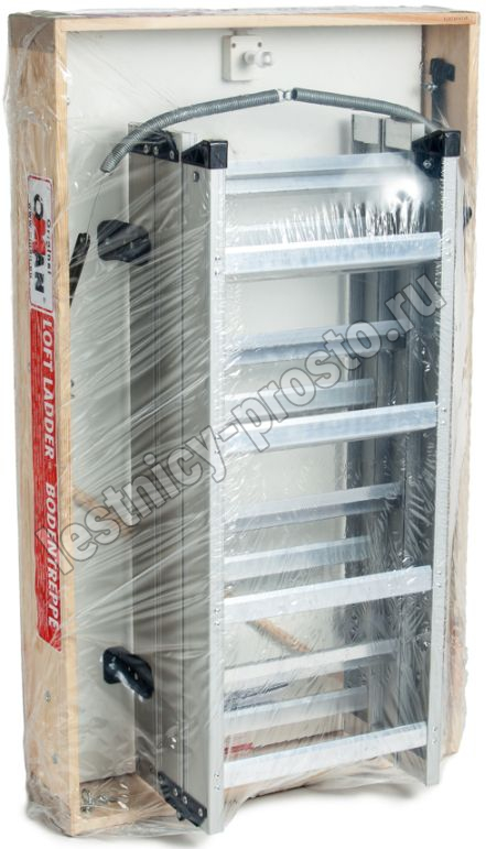 В комплекте: защитные насадки на ножки, деревянный стержень для открывания лестницы, металлический поручень.