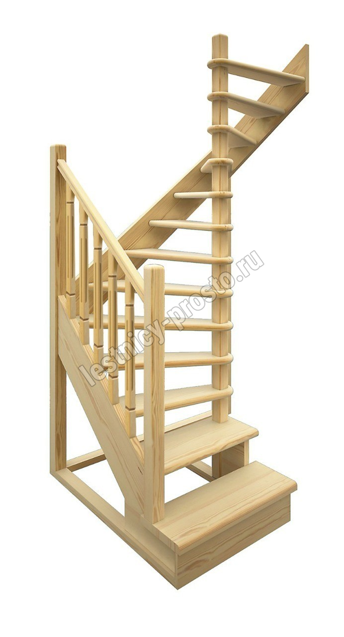 Удобная поворотная лестница на второй этаж. Дополнительные ограждения по первому маршу обеспечивают безопасность при подъеме и спуске, кроме того, небольшой угол подъема открывает всю площадь ступеней. Монтаж осуществляется силами двух человек на объекте по указаниям, приведенным в паспорте на лестницу.