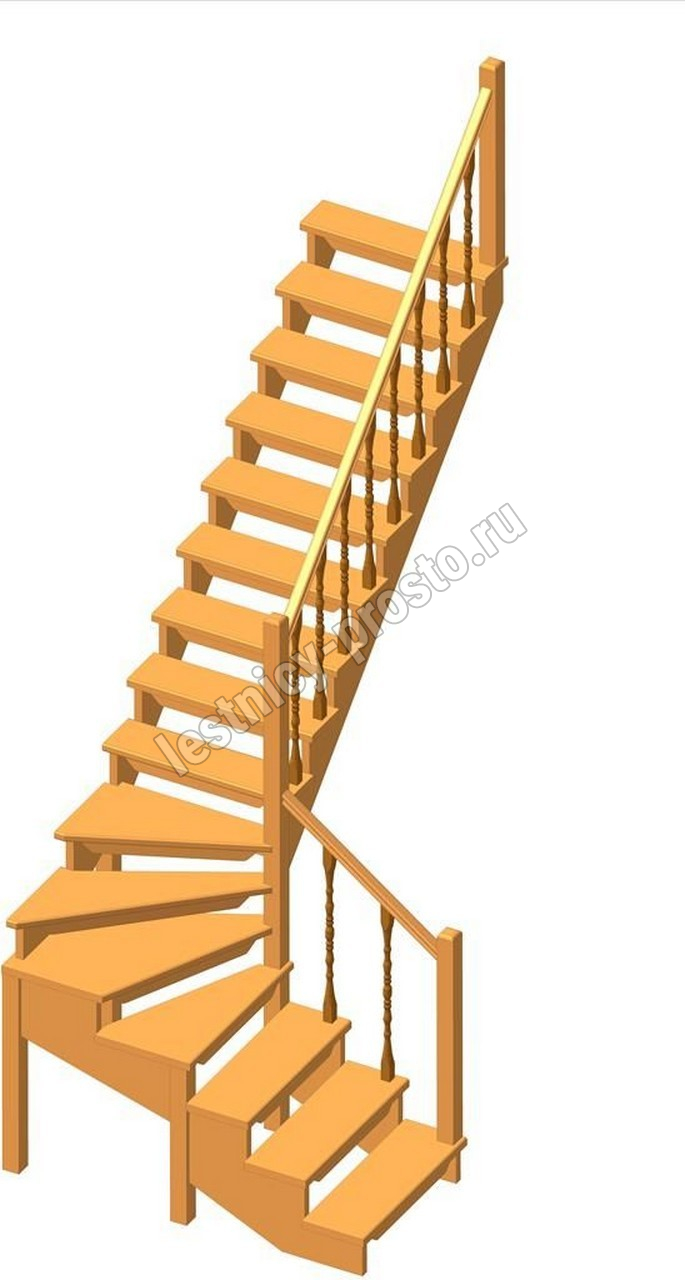 Деревянная межэтажная лестница ЛЕС-09 3310 проем 2800-900, Бук