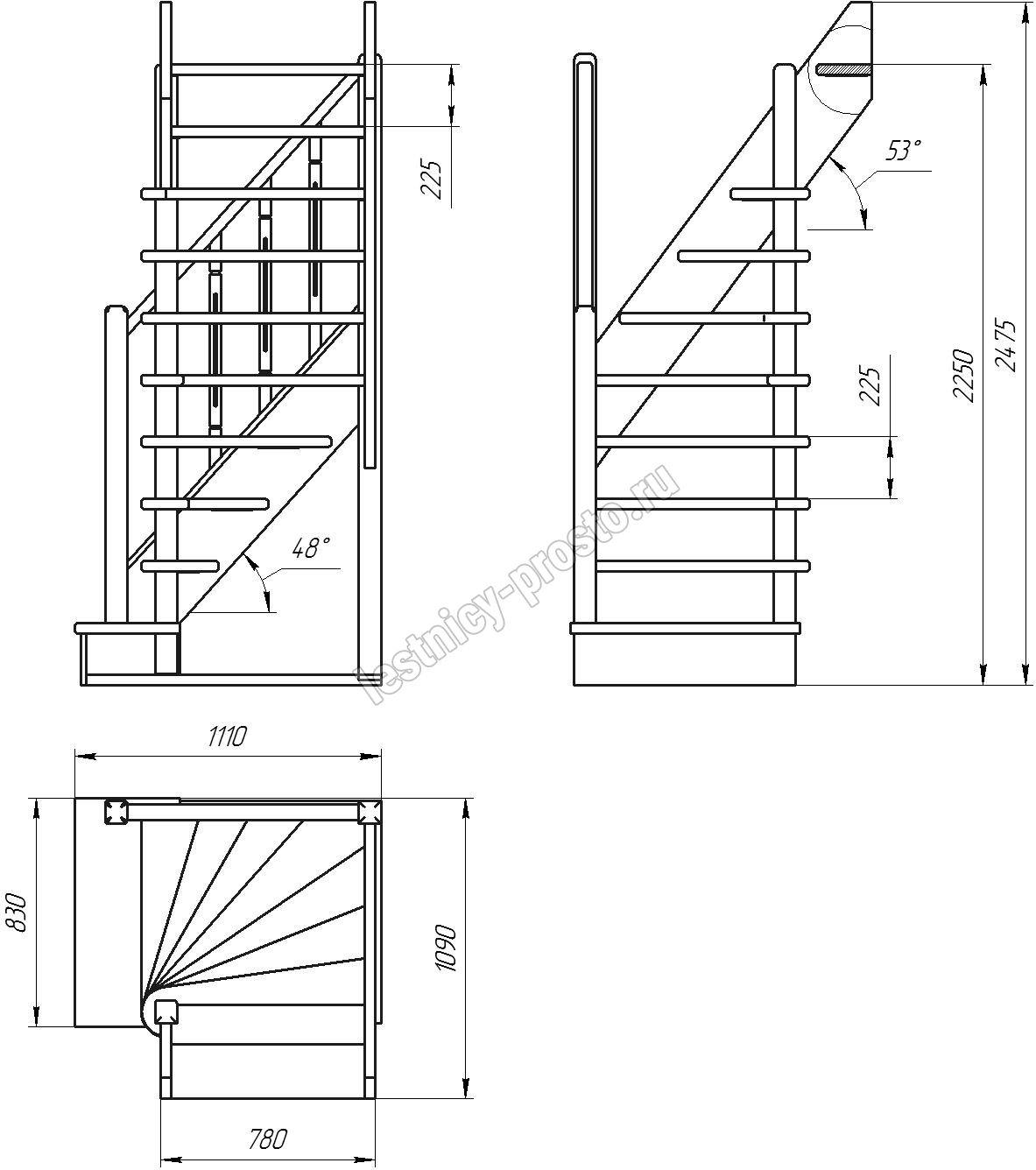 Удобная, компактная, самонесущая лесенка идеально подойдет для небольших помещений.Выбирая эту модель, Вы существенно сэкономите деньги и время. Монтаж осуществляется силами двух человек на объекте по указаниям, приведенным в паспорте на лестницу.