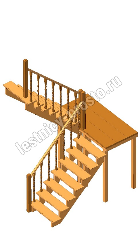 Базовый комплект включает в себя деревянные элементы лестницы, подступенки и ограждения без какого-либо покрытия. Лестница поставляется в разобранном виде, упакованная в ящик. Монтаж производится силами двух человек, в соответствии с указаниями, приведёнными в паспорте лестницы.