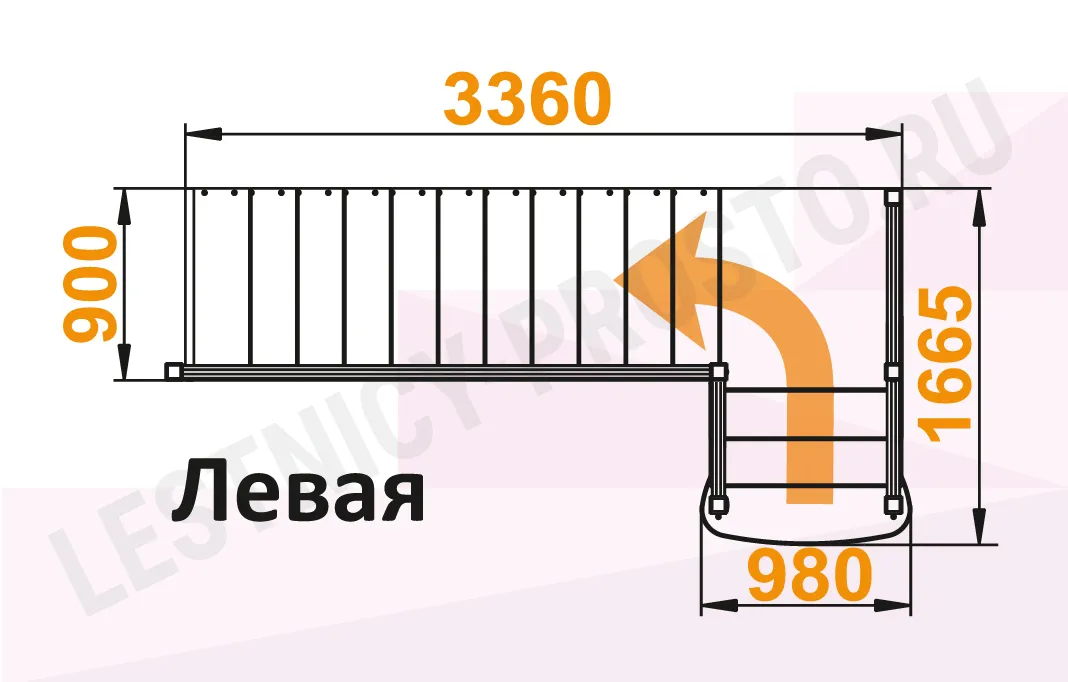 Схема лестницы К-022М с поворотом налево