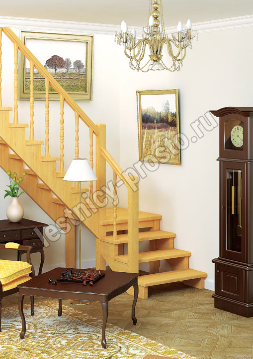 | Деревянная межэтажная лестница ЛЕС-08, Сосна с подступенкой |