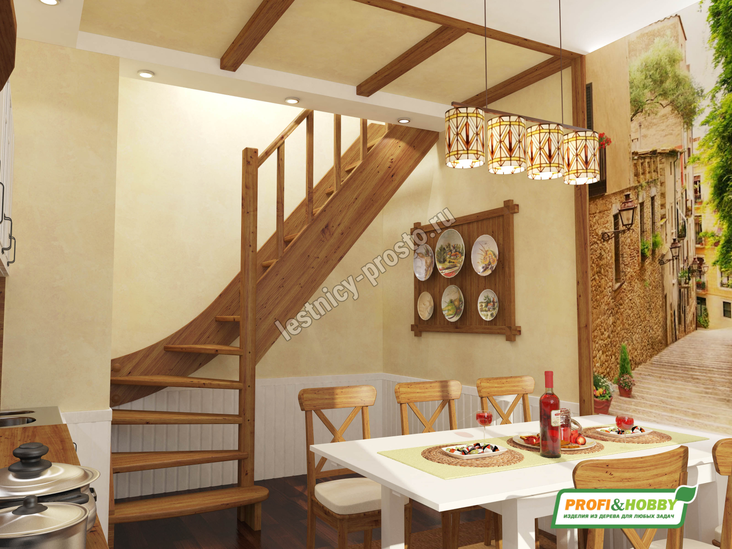 | Лестница из сосны ЛС-07М/4 с подступёнками |