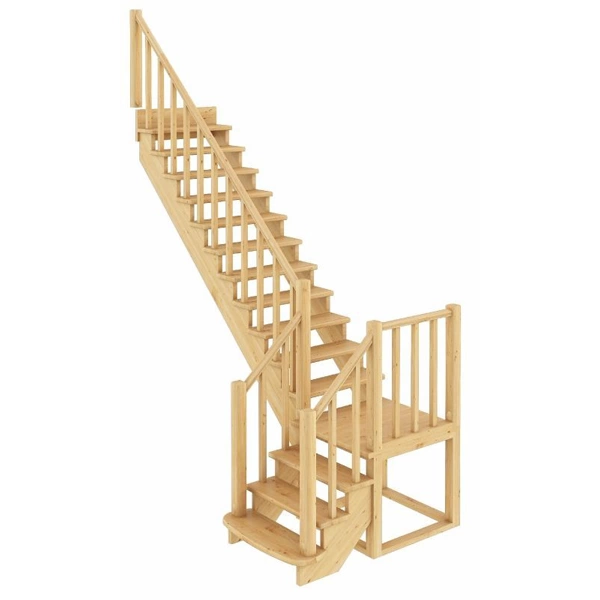 Базовый комплект включает в себя деревянные элементы лестницы и ограждения без какого-либо покрытия.