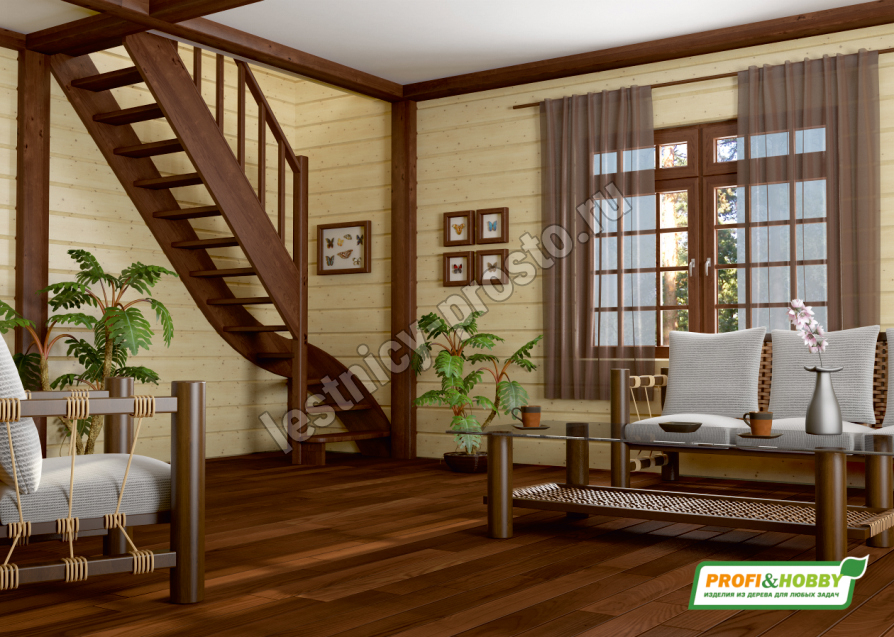 Ступени и поручень лестницы изготовлены из дуба, остальные элементы из сосны.