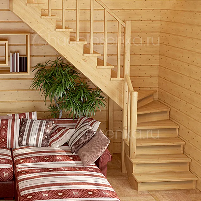 Лестница из сосны К-001м/1 под покраску с подступёнками