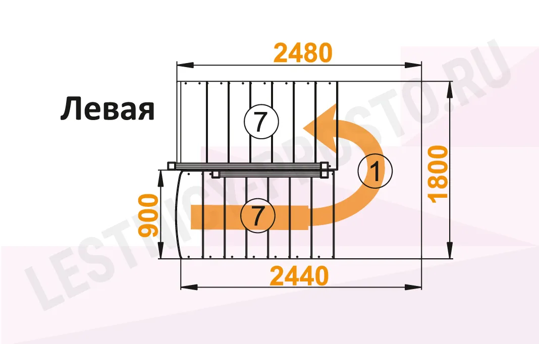 Базовый комплект включает в себя деревянные элементы лестницы с подступёнками и ограждение без какого-либо покрытия.