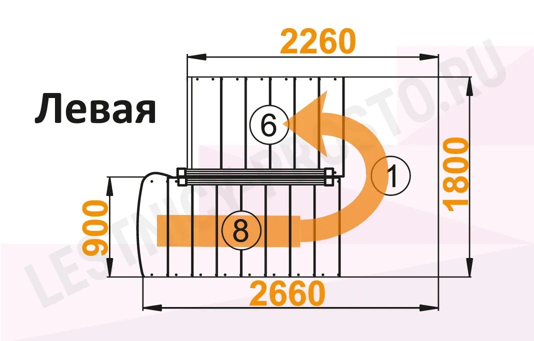 Базовый комплект включает в себя деревянные элементы лестницы и ограждения без какого-либо покрытия. Стандартные ограждения можно заменить любыми на ваш вкус (стоимость может измениться).