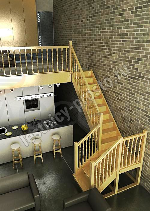 Лестница поставляется в разобранном виде, упакованной в два ящика. Базовый комплект включает в себя деревянные элементы лестницы, подступенки и ограждения без какого-либо покрытия.
