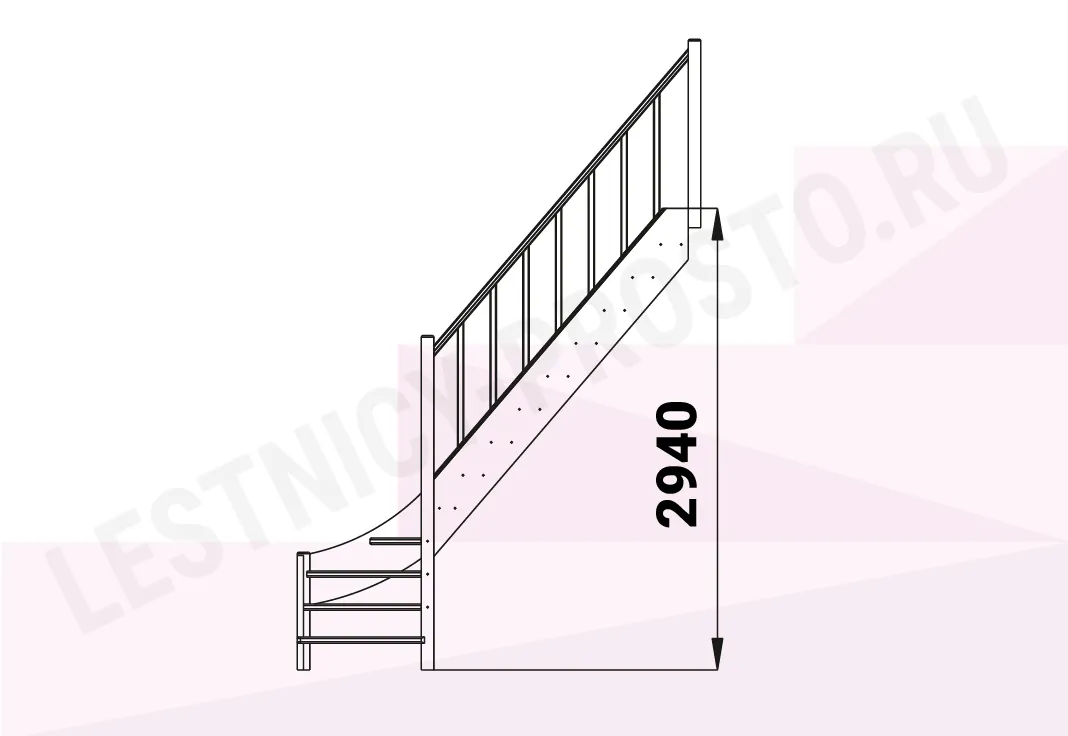 Базовый комплект включает в себя деревянные элементы лестницы и ограждения без какого-либо покрытия. Лестница под покраску изготовлена из сосны с небольшими участками синевы, которая мало влияет на механические свойства материала и практически незаметна при покраске лестницы в тёмные цвета, однако позволяет снизить стоимость готовой лестницы, по эксплуатационным свойствам ничем не отличающейся от более дорогого аналога.