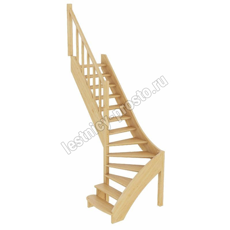 Базовый комплект включает в себя деревянные элементы лестницы с подступёнками и ограждения без какого-либо покрытия.