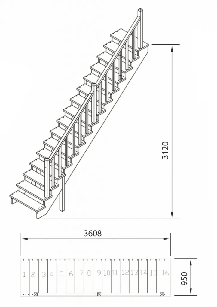 Комплектация Элементы лестницы, ограждение, крепёж, инструкция по сборке