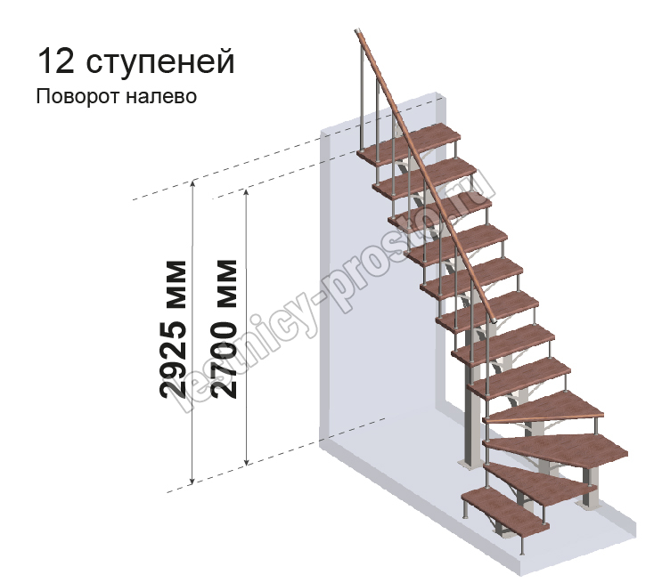 Комплект для Г-образной лестницы MONO h292.5 из 12 ступеней.