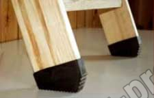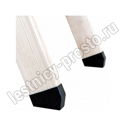 Изготавливаются из поливинилхлорида, защищают пол от возможных царапин, делают лестницу более устойчивой, облегчают подгонку длины лестницы, когда ее необходимо немного укоротить, за счет того, что в своей конструкции такая насадка уже имеет скос и две направляющие лестницы достаточно обрезать под прямым углом. Плотно одеваются на края двух направляющих и фиксируются еще и саморезом - закручивается снизу (в деревянных моделях).