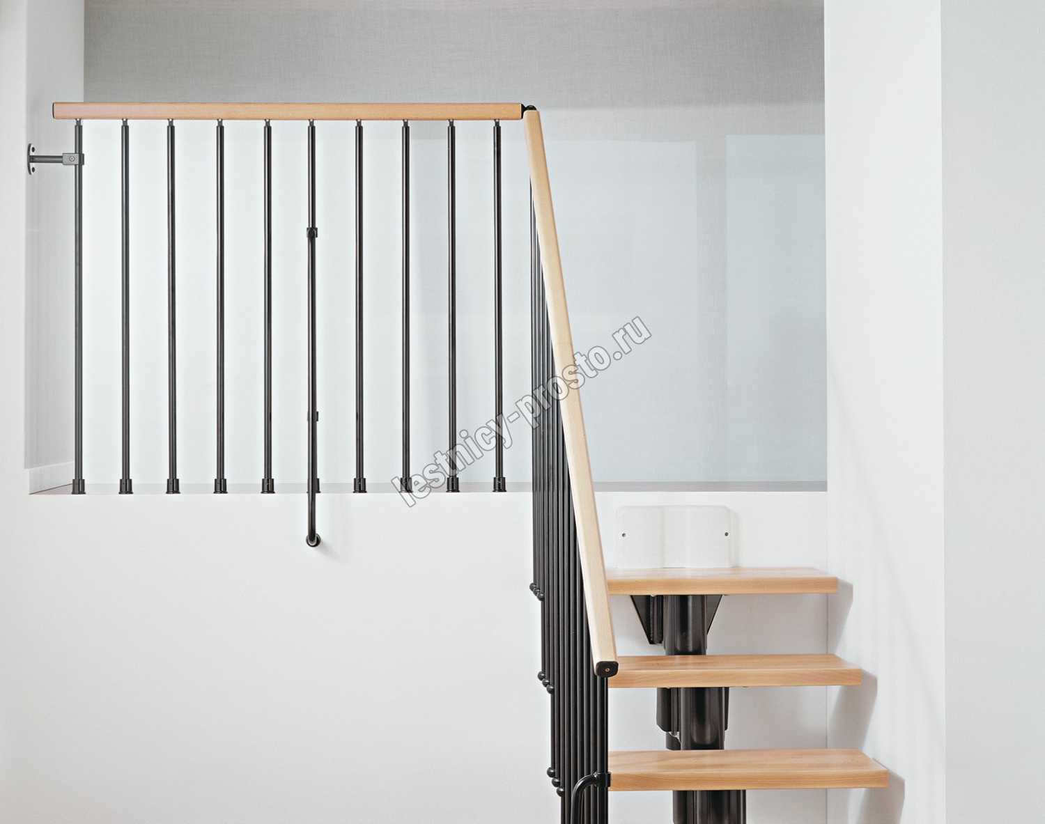 Красивая комфортная лестница с уникальной модульной конструкцией, которая позволяет собрать большое число модификаций, подходящих под ваш проём и другие условия помещения. Возможные варианты сборки лестницы смотрите в блоке "чертежи и схемы". При монтаже модульной лестницы KOMPACT, вы можете варьировать высоту шага и проступь, получив точную необходимую высоту и габариты. Лестница KOMPACT возможна в двух вариантах: с шириной марша 740 мм и 890 мм. Ступени выполнены из массива бука и покрыты качественным износостойким лаком. Базовая комплектация позволяет получить лестницу под высоты этажа в диапазоне 2250 - 3030 мм, кроме того, установив дополнительный комплект увеличения высоты, можно поднять высоту лестницы до 3730 мм. Каркас и стойки ограждения выполнены из пластифицированного металла.