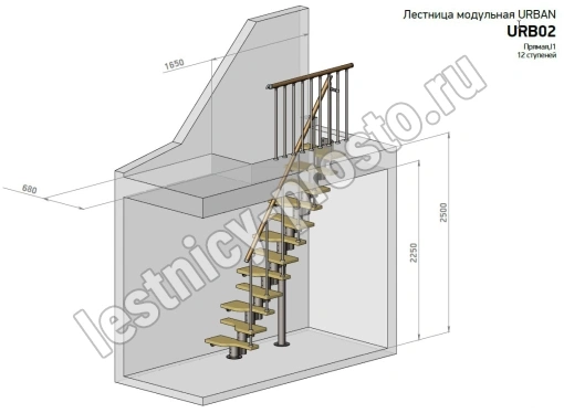 Высота лестницы 1980 - 2880 (11 ступеней) мм