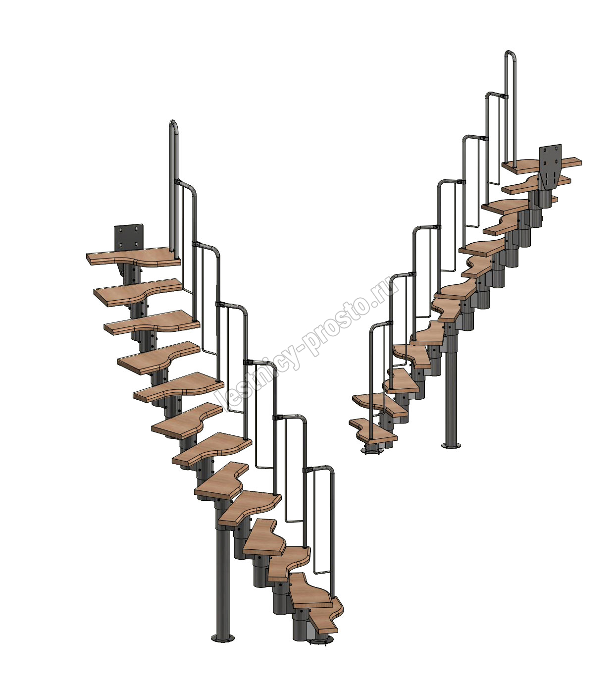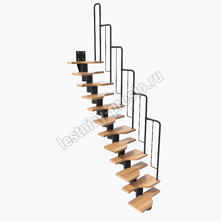 Лестница Prosto Urban Black гусиный шаг 600 мм, h342-336 см (13 ступеней), дуб