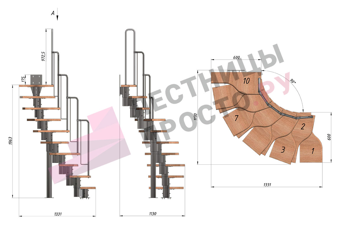 соответствует картинке, но вы не ограничены в его выборе. Лестницу можно приобрести и без ограждения, и с любым другим. Устанавливать на такую лестницу можно почти всё, начиная от классических деревянных балясин и заканчивая эксклюзивными коваными изделиями.