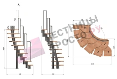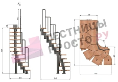 | Лестница Prosto Urban Grey г-образная гусиный шаг 600 мм, h198-288 см (11 ступеней) |