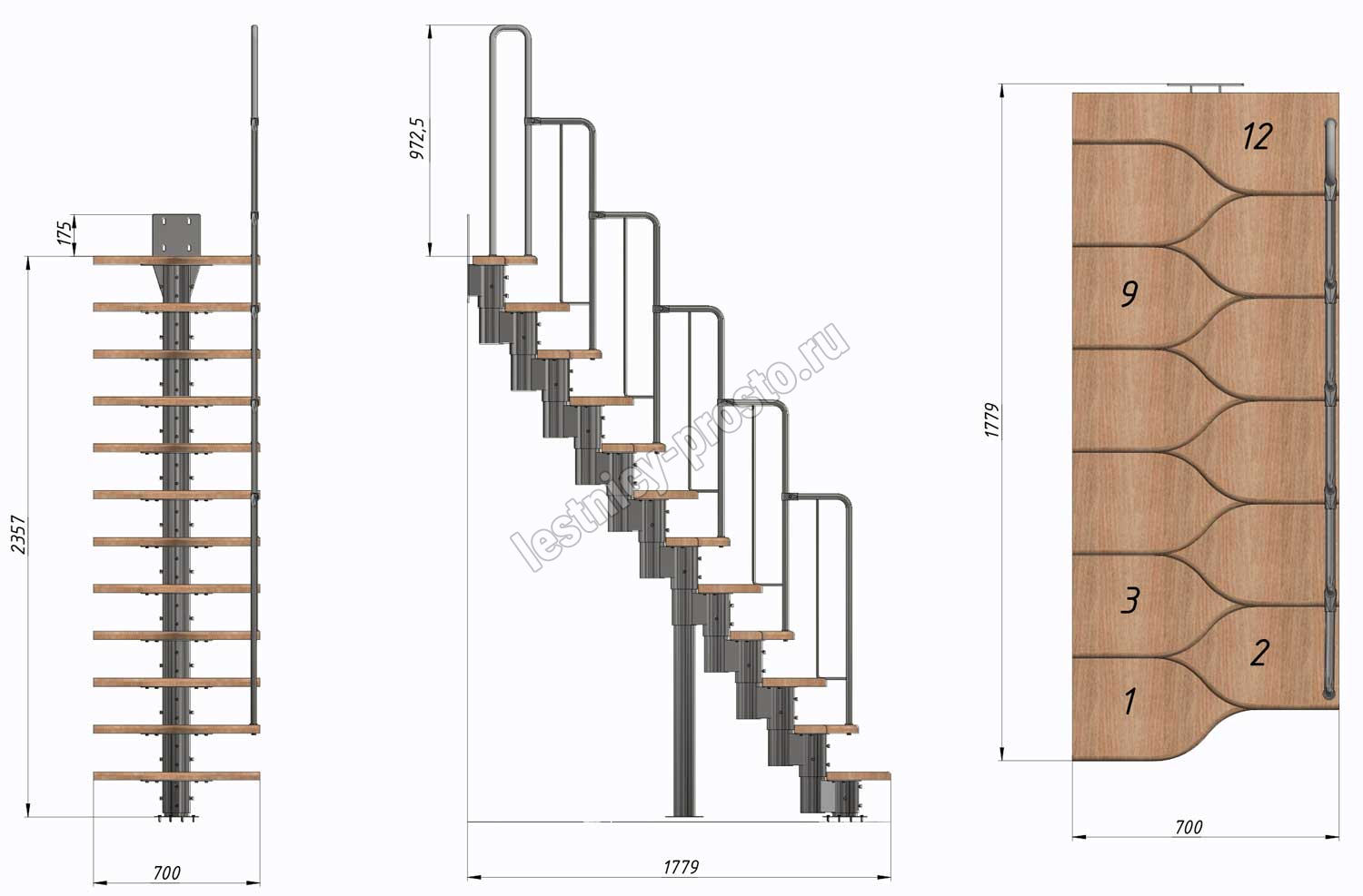 - Регулируемый по высоте в пределах 180-240 мм модуль. Большой диаметр и толщина металла деталей обеспечивают жесткость и прочность конструкции. Регулировка каждого модуля по высоте позволяет легко приспособить лестницу под ваше помещение.