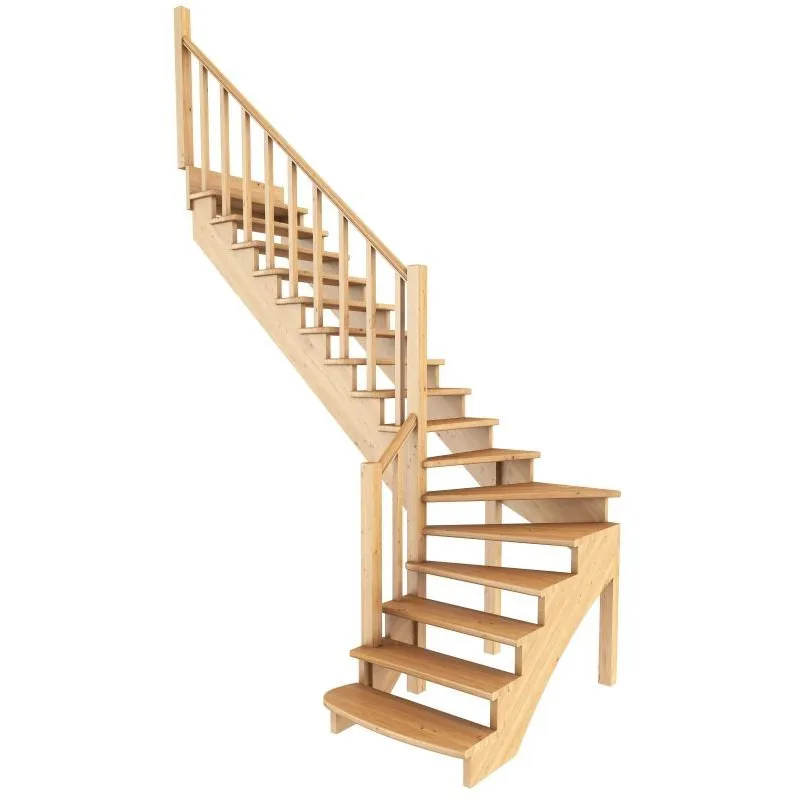 Модульность конструкции позволяет регулировать высоту лестницы при сборке и собрать необходимый поворот до 90 градусов. Ограждение устанавливается на любую сторону.