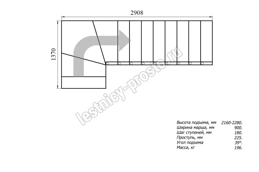 Модульная лестница Фаворит 180 2160-2280, Серый, Сосна, Крашеная