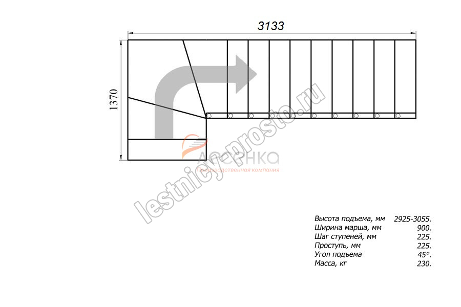 Модульная лестница Фаворит 225 2925-3055, Белый, Лиственница, Нержавеющая сталь