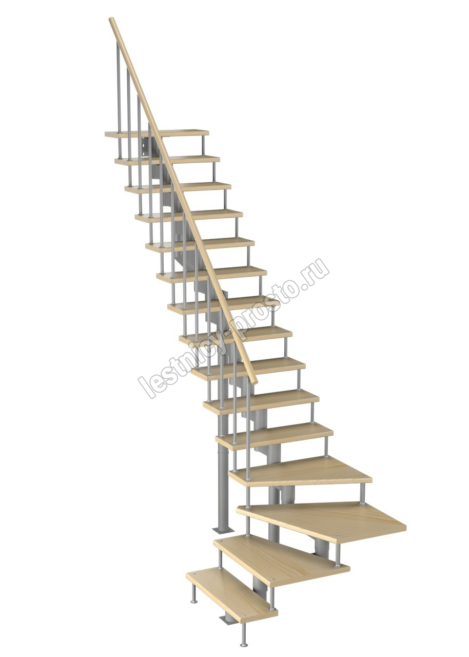Модульная лестница Фаворит 225 3375-3525, Серый, Бук, Нержавеющая сталь