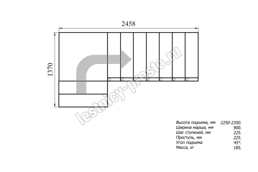 Высота лестницы 2250 - 2350 мм