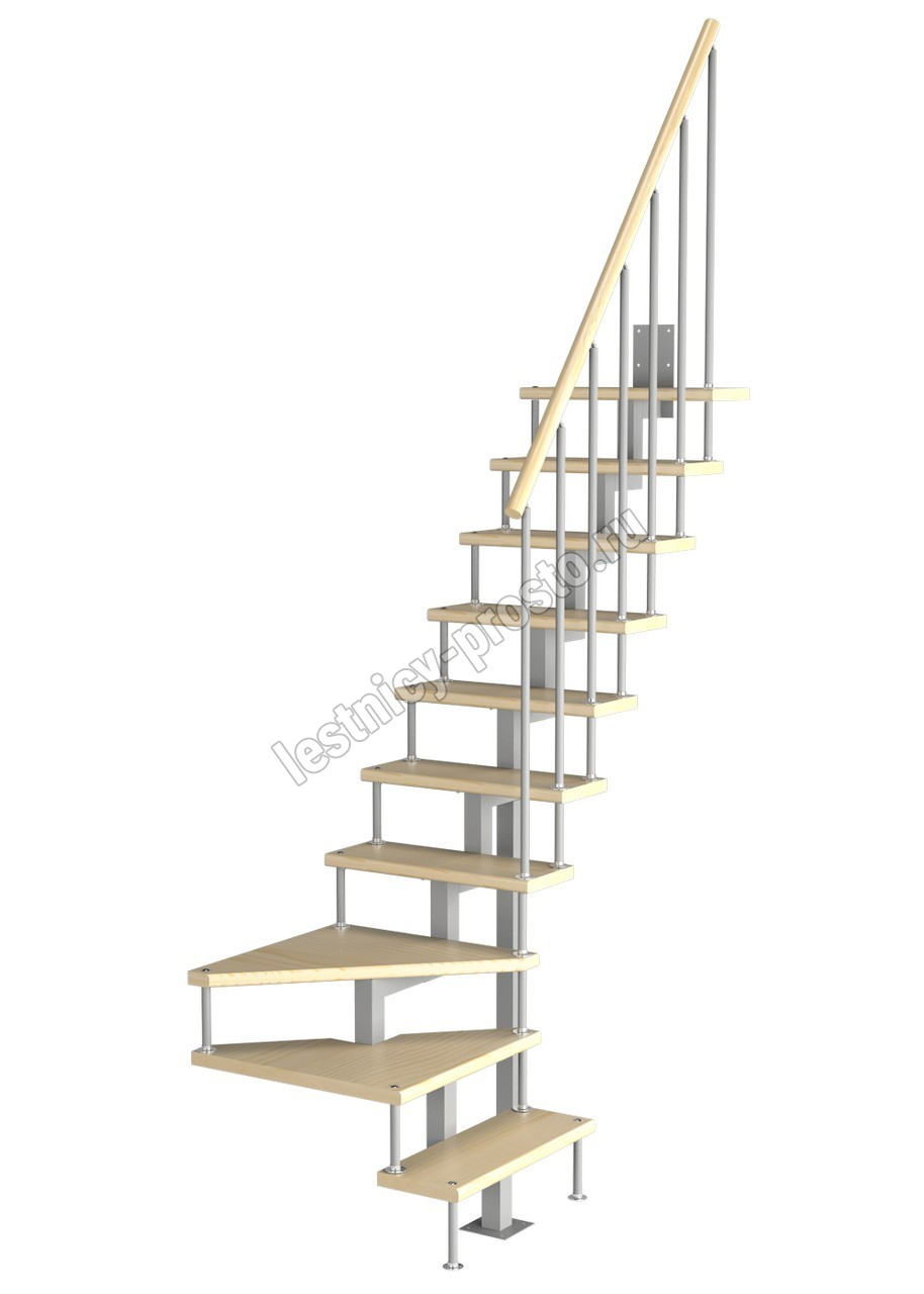 Модульная малогабаритная лестница Компакт 2700-2925, Серый, Сосна, Нержавеющая сталь