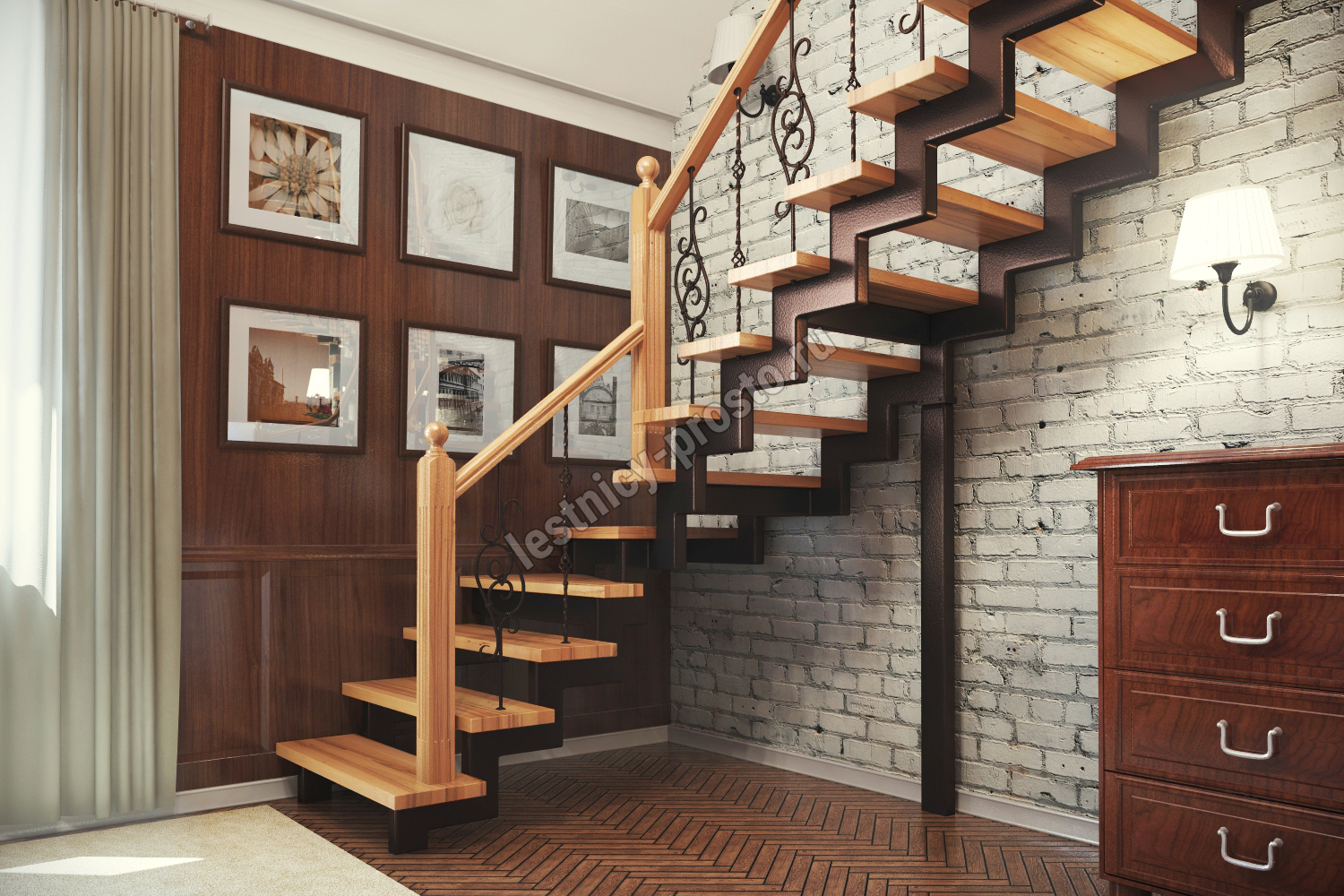 У данного варианта лестницы поворот реализован через забежные ступени. Под заказ возможно изготовление каркаса под поворотную площадку.