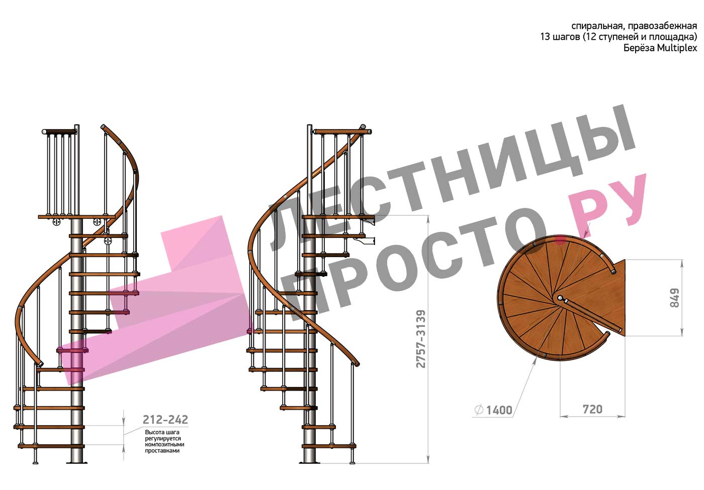 Решение об ориентации поворота лестницы принимается при сборке (комплект собирается и в правозабежную, и в левозабежную лестницу)