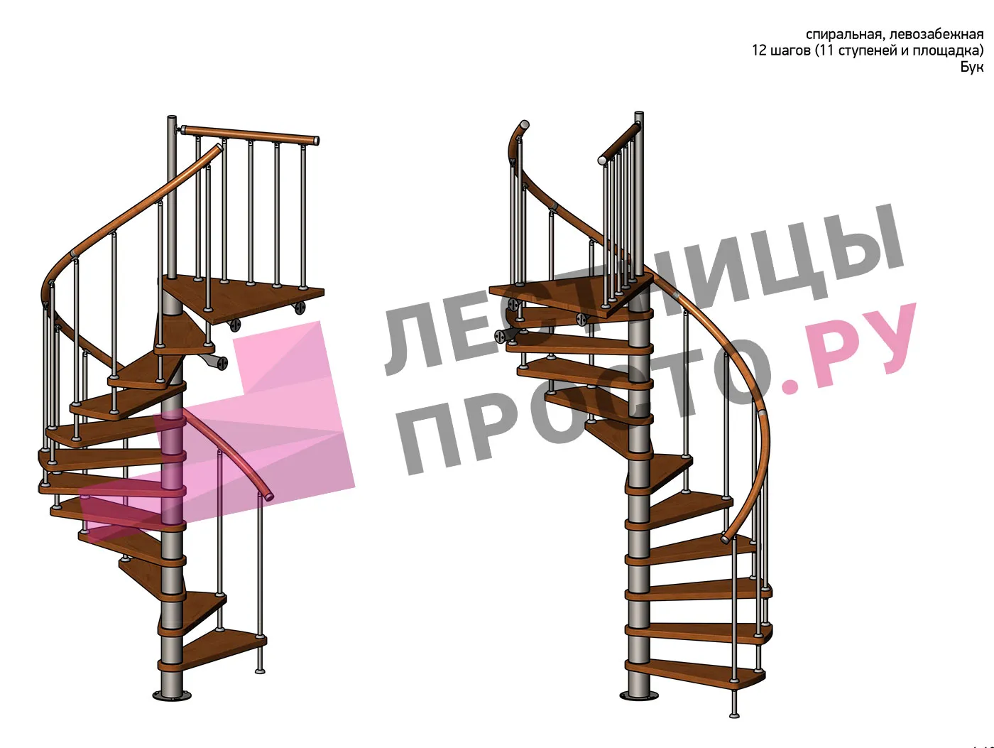 Винтовая лестница Prosto Spiral Black D160см, h260.5-304.6 см, бук