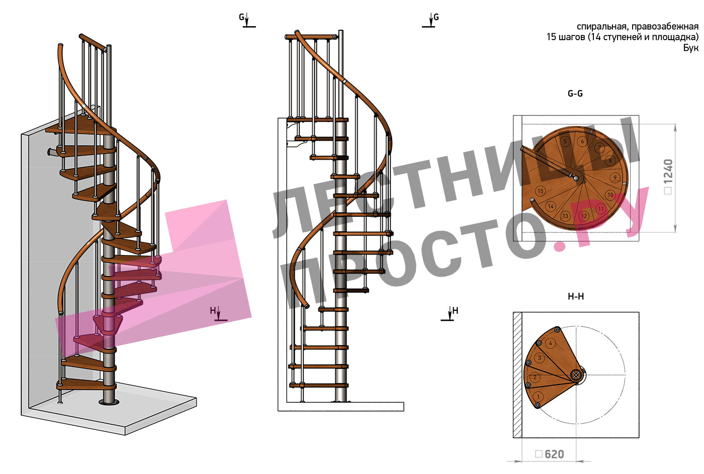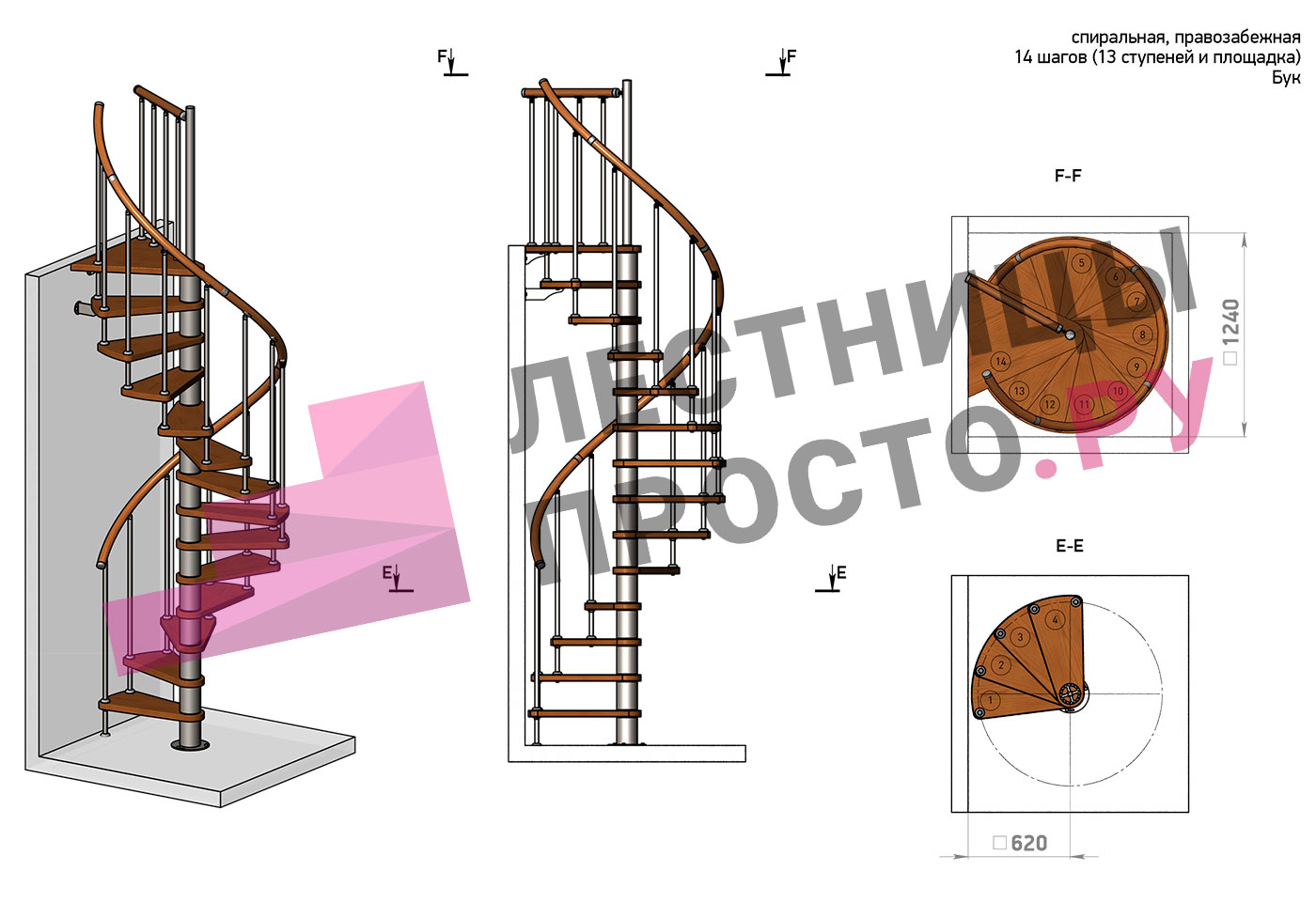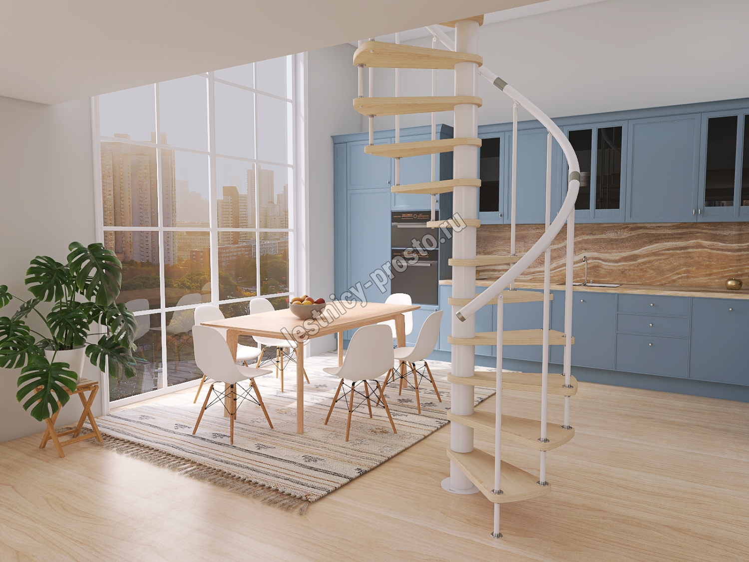| Винтовая лестница Prosto Spiral White D140см, h282.2-326,3 см, бук |