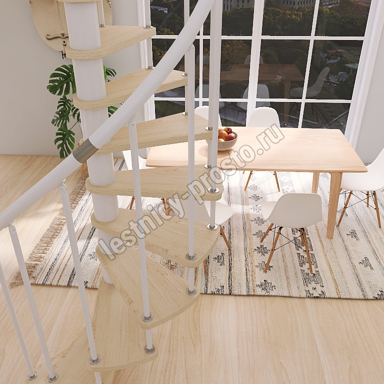 | Винтовая лестница Prosto Spiral White D120см, h303.9-348,1 см, бук |