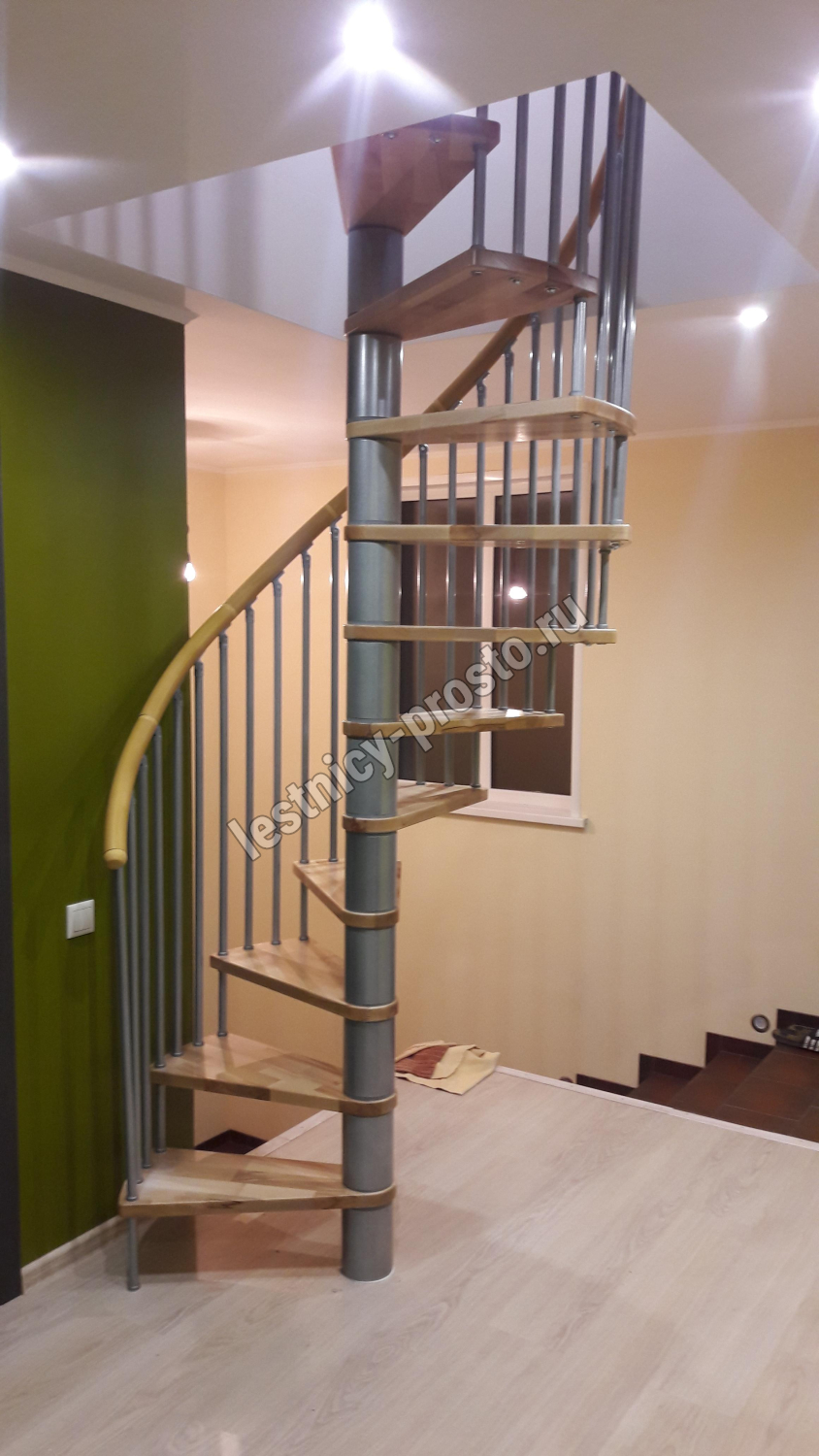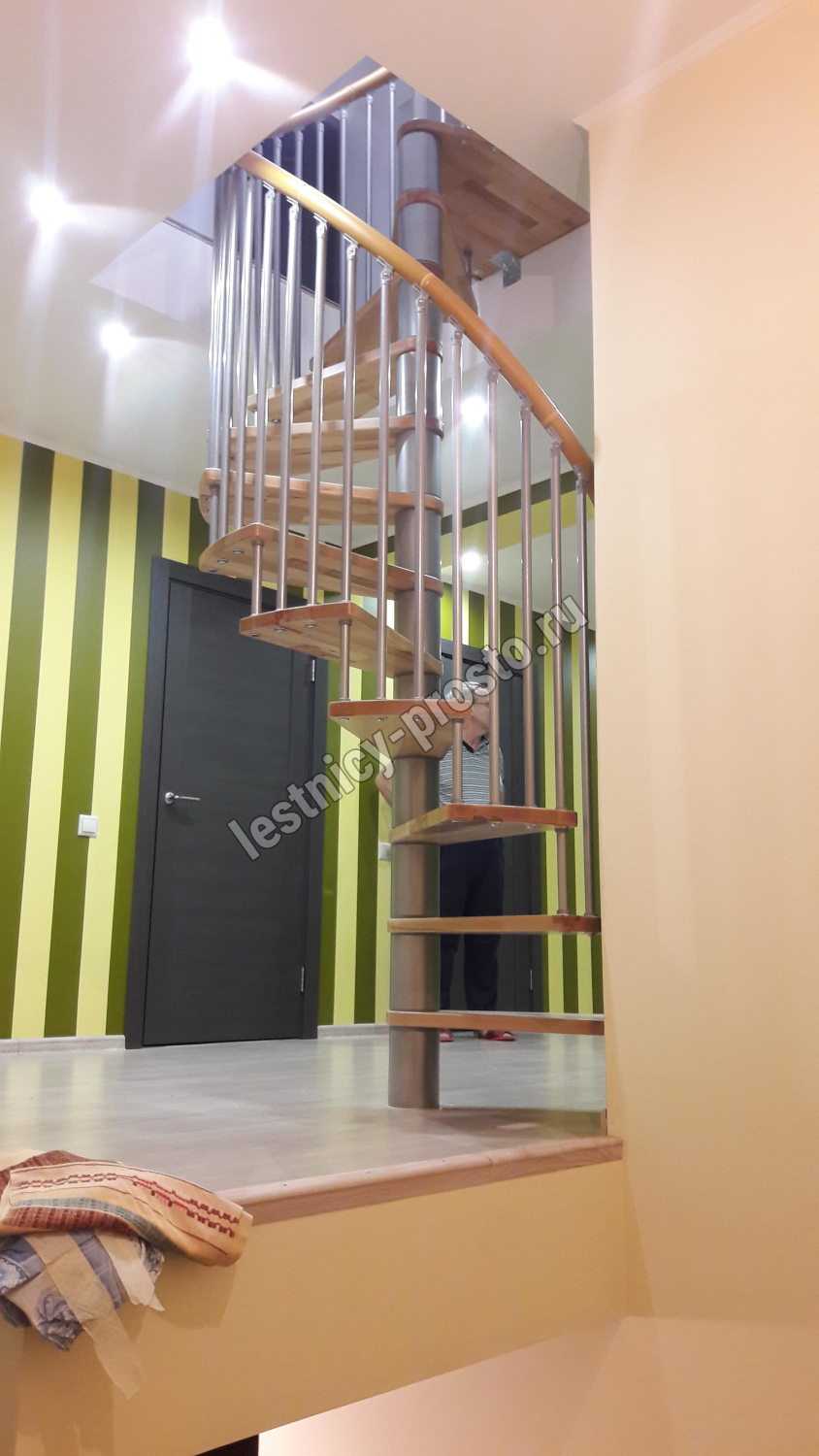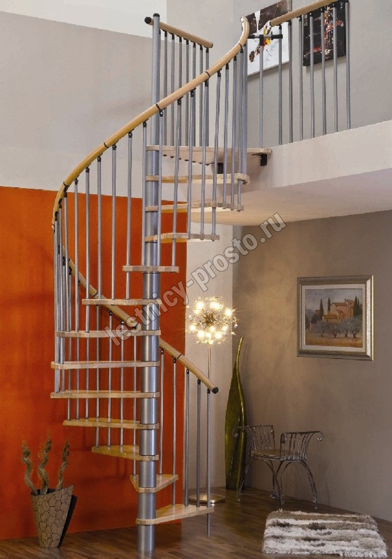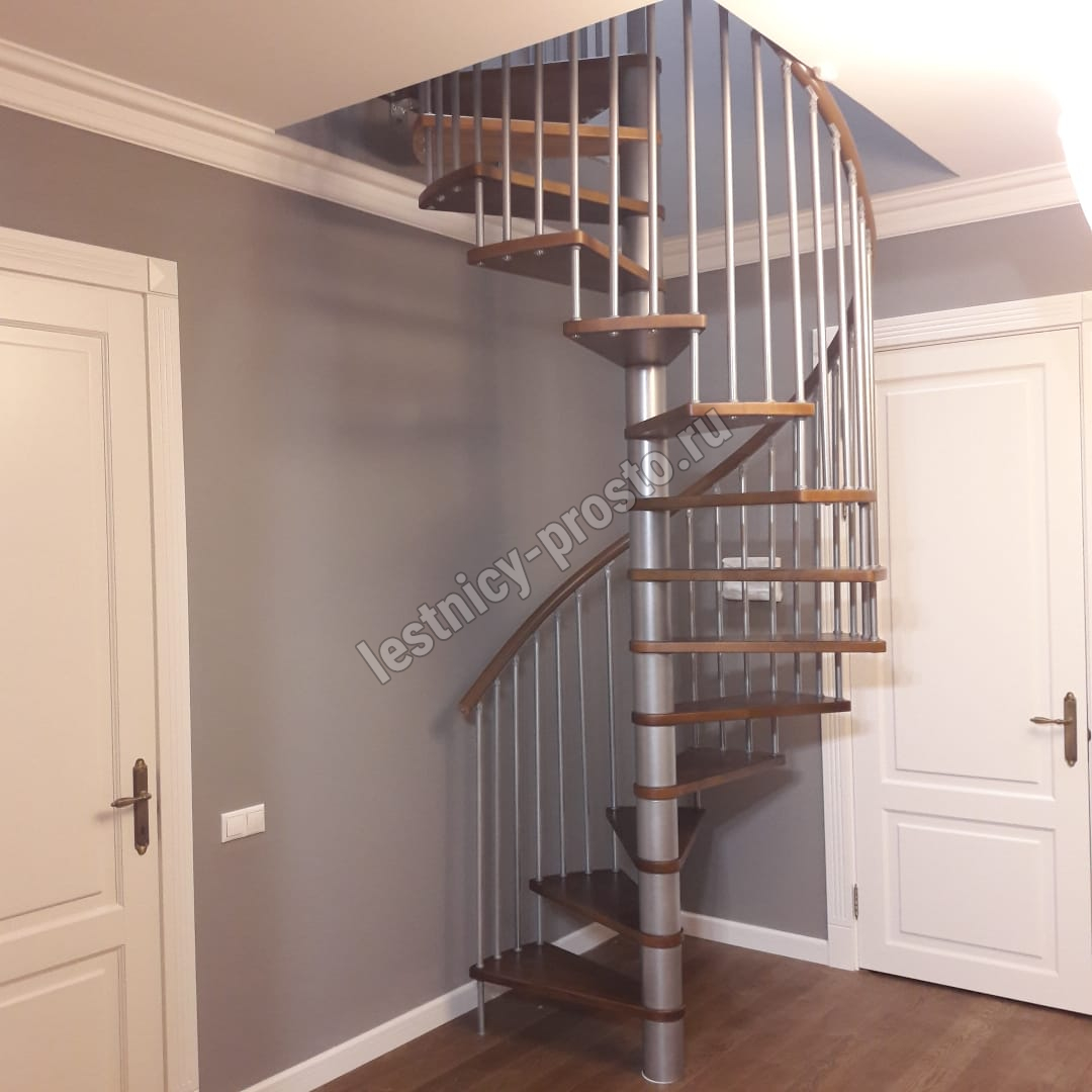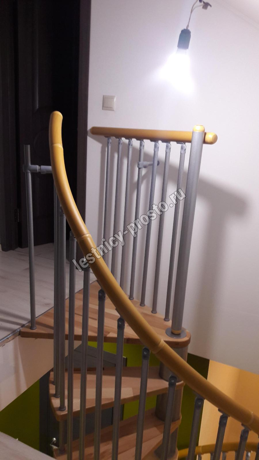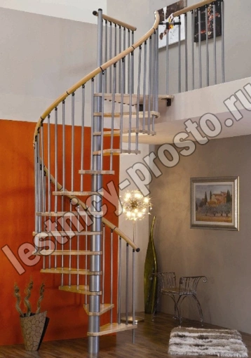 Винтовая лестница SPIRAL WOOD d140 см, серебро, лакированный бук